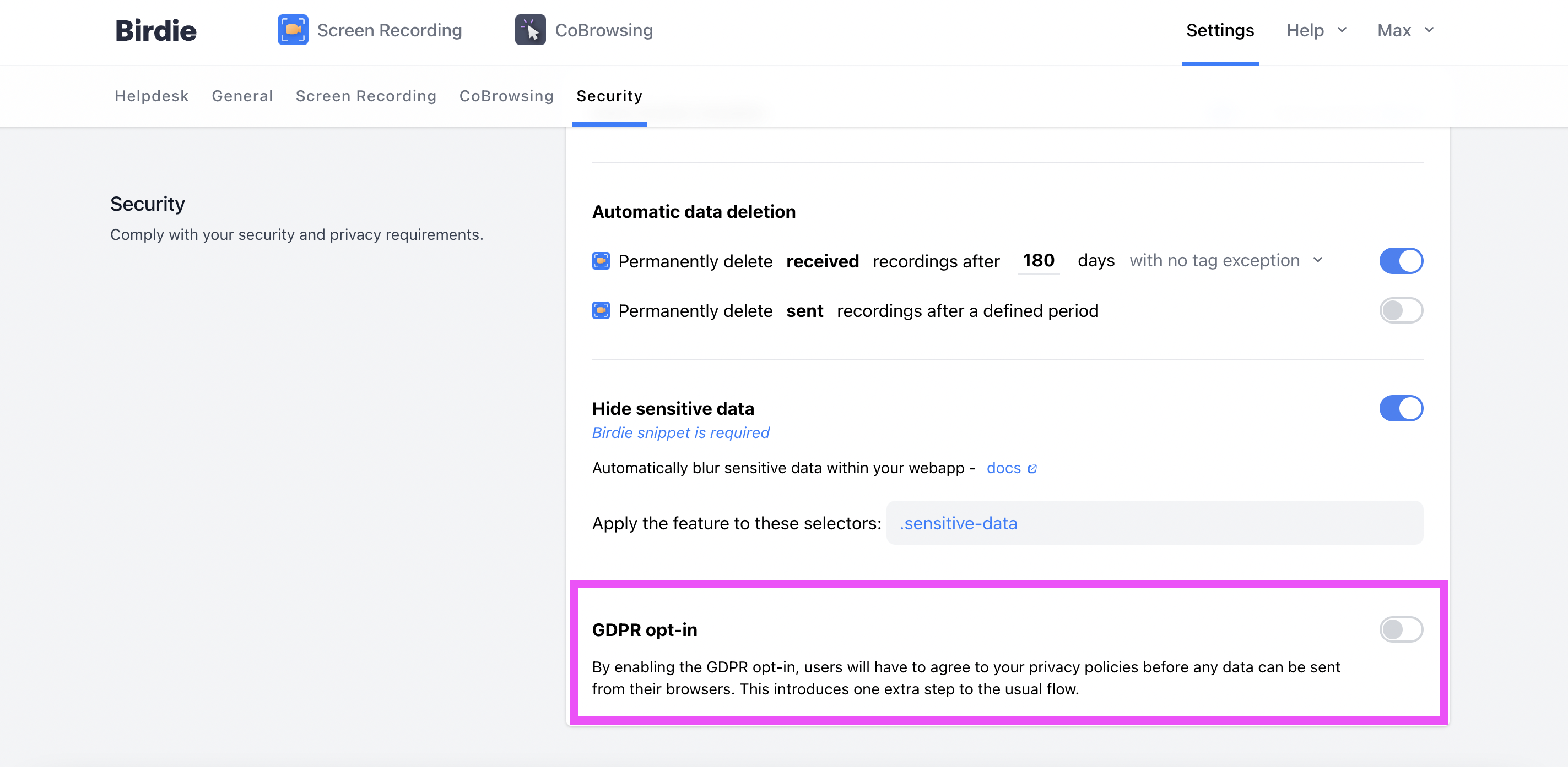 By enabling the GDPR opt-in, users will have to agree to your privacy policies before any data can be sent from their browsers. This introduces one extra step to the usual flow.